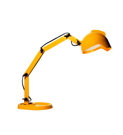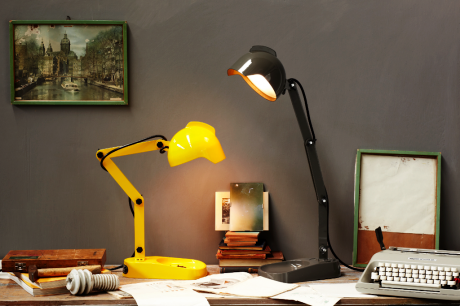 Duii è disponibile solo nei colori giallo o grigio. La sua base, di spessore importante, ricorda la zampa di un papero e può fungere da appoggio per piccolo oggetti. Il corpo, snodato e smontabile con i suoi 4 bracci tenuti insieme da dadi a farfalla neri, ricorda il gioco del Meccano. Il diffusore in vetro pressato e metallo, richiama alla memoria il fanale della mitica 313, l’auto di zio Paperino, ma anche il casco di quei buffi marziani dei cartoons di Bugs Bunny e Duffy Duck. O forse la cresta sul paralume è ispirata alla testa del mohicano, lo storico simbolo “ribelle” della Diesel che, insieme a Foscarini, ha disegnato questa lampada.