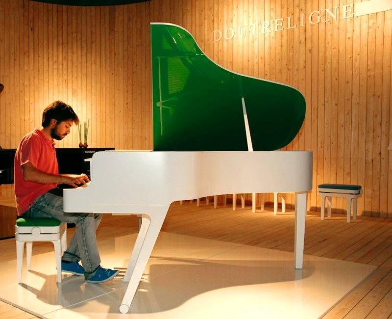 Le linee sono state ridotte alla loro essenza di rafforzare il carattere dello strumento. Con le sue gambe oblique, il pianoforte sembra inginocchiarsi e invitare a suonarlo. Si tratta di uno strumento con un’anima vibrante e un desiderio di cultura contemporanea. Tutte le parti di Doutreligne 7 sono stati accuratamente selezionate e assemblate da un’azienda che da 70 crea artigianalmente pianoforti di alta qualità. Doutreligne 7 è disponibile nei colori bianco o nero, con vivaci abbinamenti cromatici a contrasto sia nel rivestimento del sedile, sia all’interno della cassa.