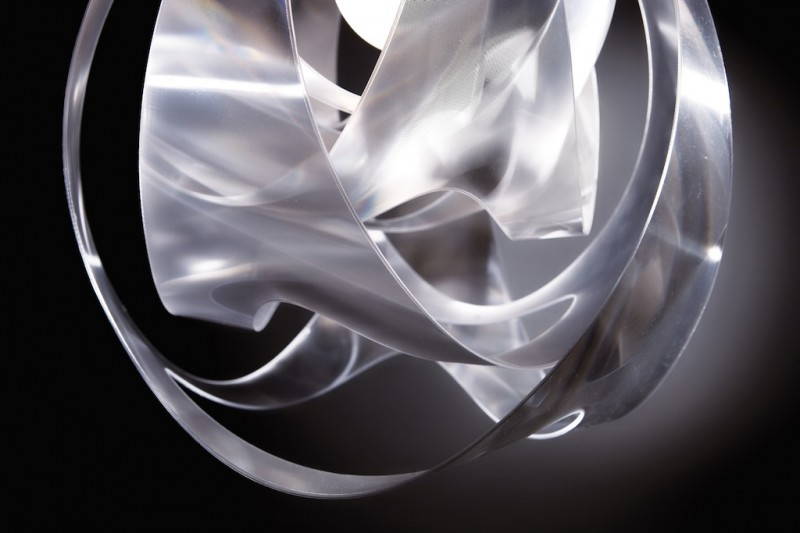 Frutto di un importante lavoro del reparto R&D di Slamp, il Lentiflex® dona alla lampada una finitura carica di bagliori grazie all’effetto “fresnel” che lascia passare la luce ma al tempo stesso la scompone, generando effetti cromatici cangianti.