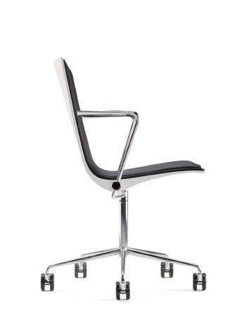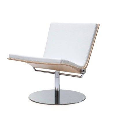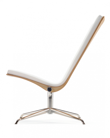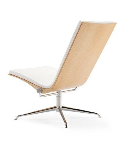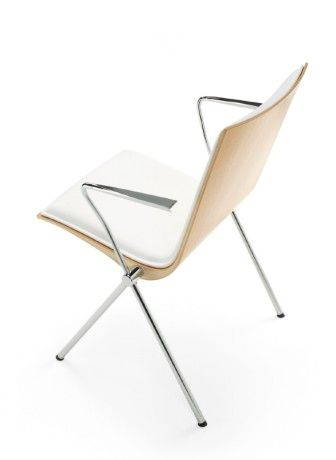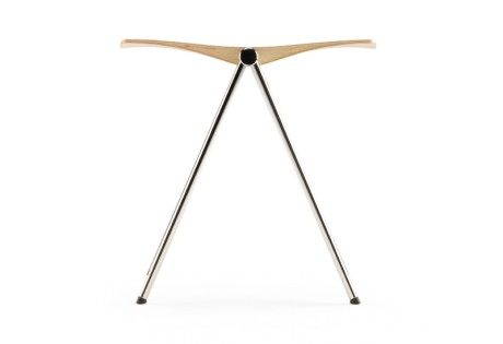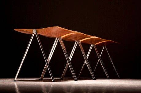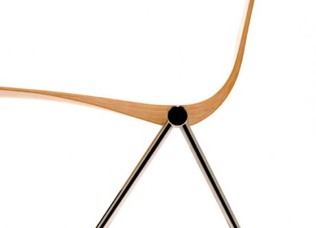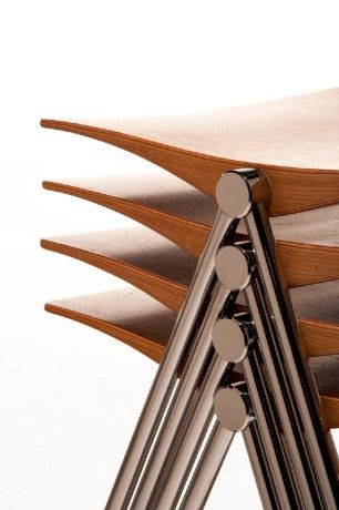 Il risultato è davvero eccezionale. Una struttura in metallo cromato sorregge la seduta lignea col profilo in multistrato di pesco, rovere o faggio a spessore variabile (più accentuato al centro, sempre più sottile agli estremi) che dona a tutti i pezzi della collezione una linea esile e sinuosa di grandissimo effetto.