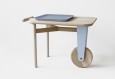 Oltre il letto, la linea comprende una piccola e una grande scaffalatura, due cavalletti di diverse dimensioni, un tavolo e una panca.
