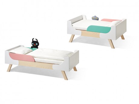 Quando viene utilizzato come fasciatoio, il materasso può essere regolato in altezza e il “guardrail” di protezione può essere rimosso. In seguito, i pannelli laterali alte possono essere rimossi per creare un letto per bambini con materasso di 70 x 120 centimetri ma, estendendo la rete a doghe, il letto può allungarsi fino a contenere materassi fino a 70 x 160 centimetri.