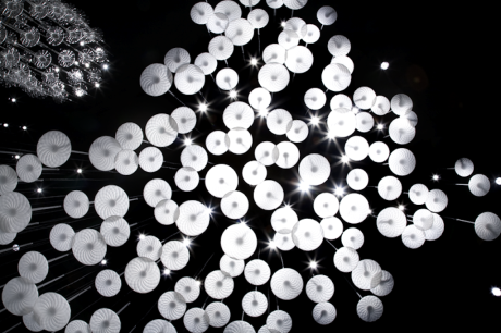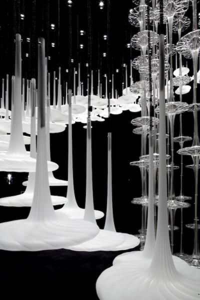 Al Temporary Museum for New Design di Superstudio Più, Sigma viene reinterpretata in chiave immaginifica nell’installazione “Maelström”: moltiplicate da una grande parete specchiata, centinaia di gocce luminose sospese al centro di una camera buia compongono un vortice di luce dalle tonalità fredde – per la prima volta Melogranoblu utilizza la luce colorata – dove l’effetto visivo viene esaltato da quello sonoro, che ricrea un temporale estivo, e dalle musiche originali di Andrea Tinelli.