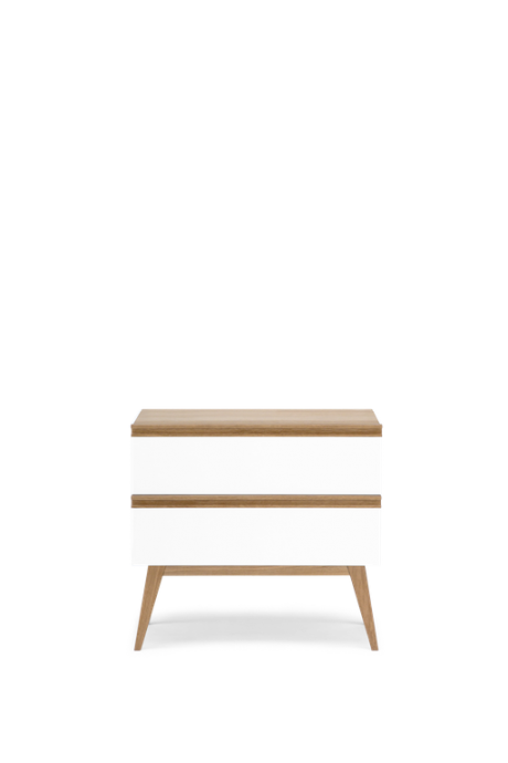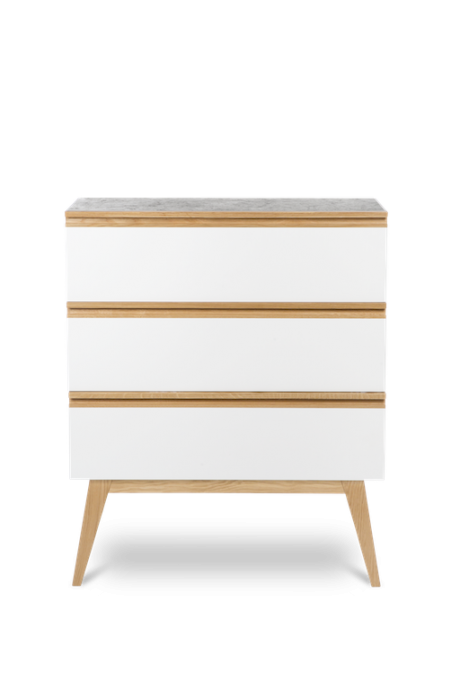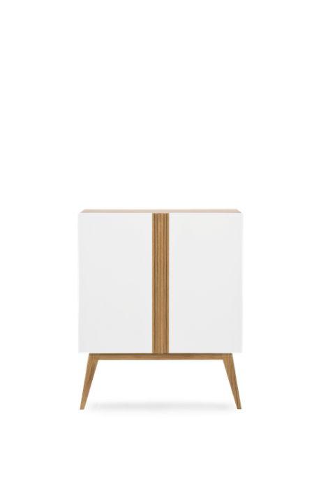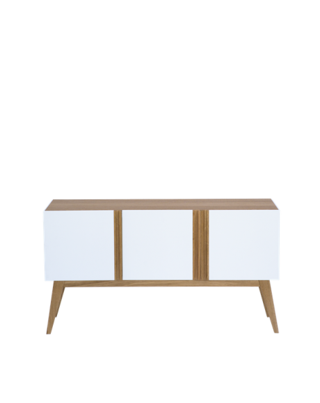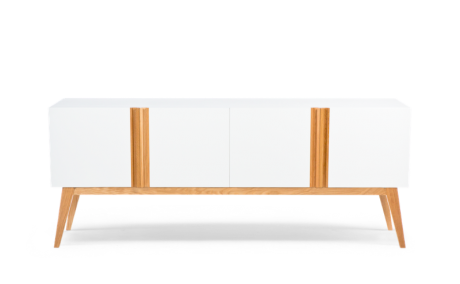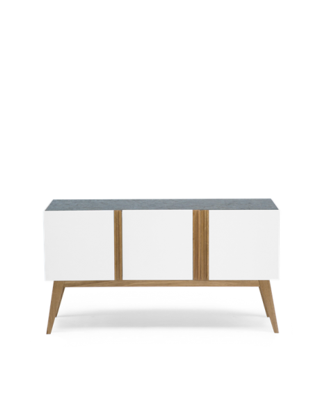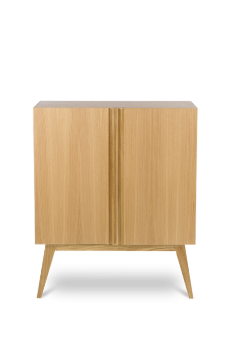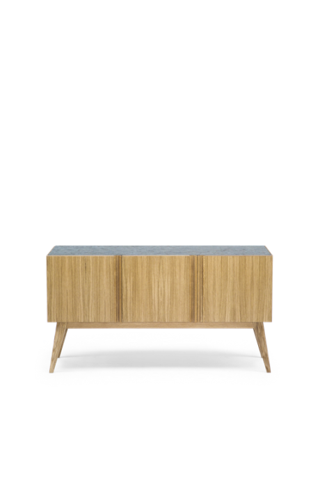 Tutti i mobili della linea Boss, cassettiere, credenze e madie, sono realizzati in rovere impiallacciato con la base e la maniglia in rovere massello, e con la possibilità di scegliere tra diversi tipi di top: rovere laccato, tinto nero, tinto bianco o in pietra calcarea svedese.