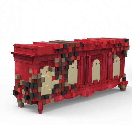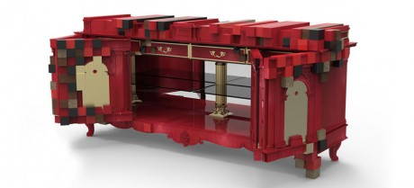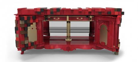 Gli artigiani e i designer di Boca do Lobo e sono sempre alla ricerca di nuovi i confini del design. Uno degli esempi più recenti e significativi della sperimentazione dell’azienda portoghese è la credenza Piccadilly, un elemento scultura realizzato partendo dall’assemblaggio di moduli quadrati. Il risultato è un mobile che assume l’aspetto di un’immagine “pixelata”. Decisamente un’immagine forte, come tutti i pezzi di design prodotti da Boca do Lobo. L’interno, con un fondo a specchio, è organizzato con quattro cassetti e due ripiani in vetro fumé. Caratterizzata da un grande dinamismo delle forme e da una evidente potenza espressiva, la console Piccadilly è realizzata in tiratura limitata ed è disponibile in due versioni: una tonalità champagne e una versione rosso passione. www.bocadolobo.com
