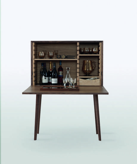 Al suo interno i diversi scomparti (cinque cassette e diverse scaffalature) possono essere facilmente modificati, spostati e riorganizzati secondo le diverse esigenze, permettendo così di essere utilizzato come bar, come scrittoio o semplicemente come credenza.