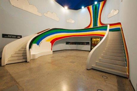 Melissa, brand icona brasiliano eco-friendly che negli anni ha prodotto e distribuito più di 60 milioni di scarpe, ha realizzato nel proprio showroom di San Paolo una nuova installazione realizzata con il Lego. Quasi un milione di mattoncini Lego sono stati infatti assemblati per realizzare la grande scala di ingresso nei colori dell’arcobaleno, ispirata al tema della collezione SS13-Melissa Rainbow. Le pareti della facciata sono state così trasformate in un grande cielo blu con alcune piccole nubi che circondano la “scala arcobaleno”. Uno spazio multicolor in cui visitatori e clienti possono interagire personalmente, possono salire e scendere dai gradini e giocare con l’installazione. Anche l’interno della Galeria Melissa è stato rinnovato attraverso l’applicazione di adesivi a parete ispirati ai piccoli moduli utilizzati per creare la nuova facciata. Per completare l’arredamento, i prodotti della linea LEGO Girl saranno esposti nella Galeria.