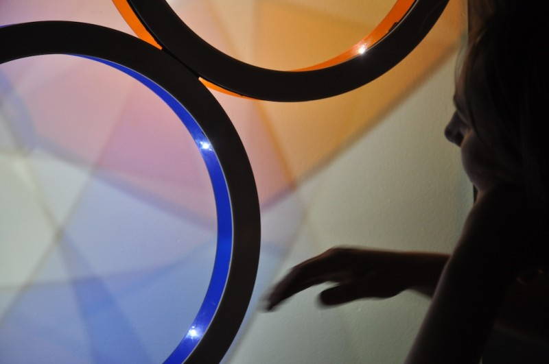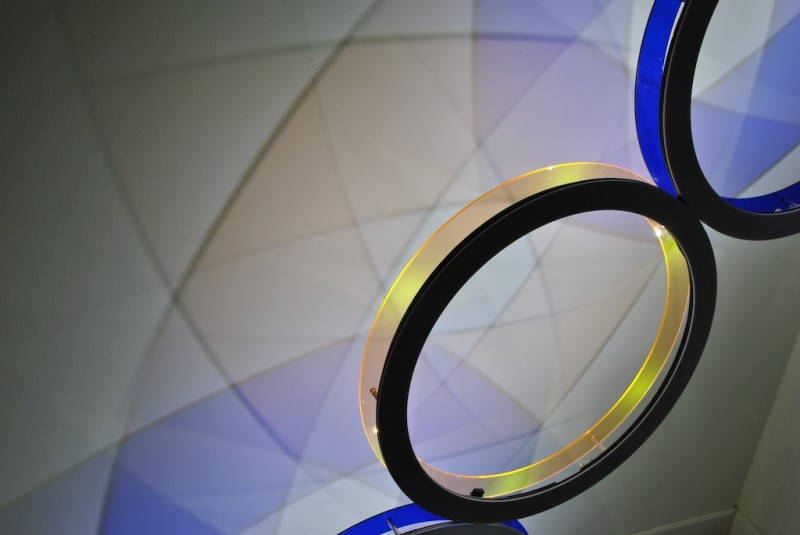 Mayala è un elemento illuminante costruito da tre dischi indipendenti tra loro. Ciascun disco è a tutti gli effetti una lampada indipendente. Ogni disco, realizzato in plexiglass colorato, ospita 6 led bianchi ad altissima efficienza e a basso consumo ed è dotato di sensori all’infrarosso a riflessione che permettono di comandare la lampada semplicemente avvicinando la mano al bordo interno del disco, senza che sia necessario alcun contatto. A seconda del movimento della mano si ottiene l’accensione, lo spegnimento o la regolazione dell’intensità della luce.