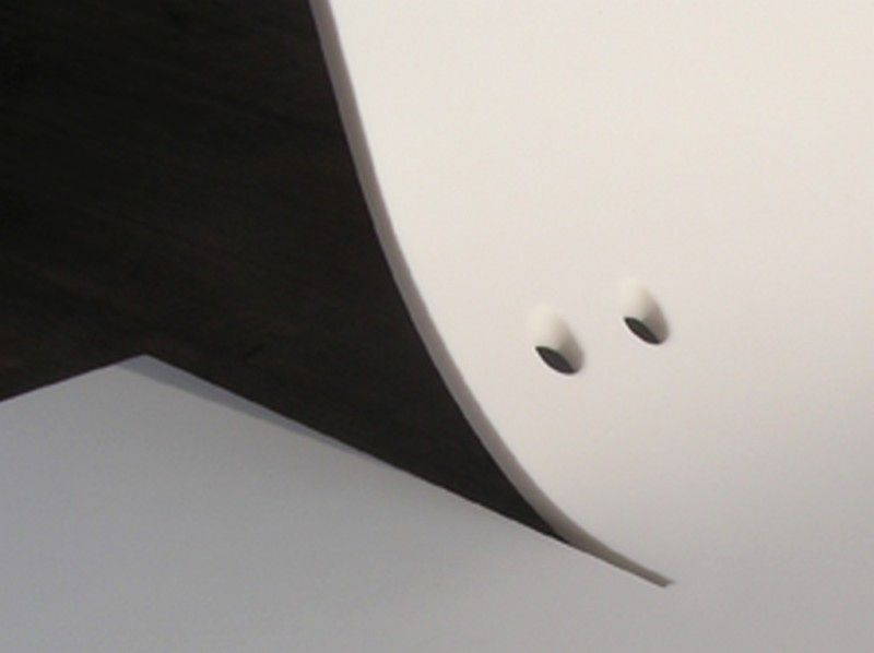 La lastra di Corian viene tagliata e smussata sui bordi. Successivamente vengono create le fresature e le perforazioni necessarie. La fase successiva è quella della termoformatura che permette al materiale di assumere le pieghe che la caratterizzano. Infine vengono realizzati i collegamenti elettrici e installato il corpo illuminante led con accensione a sfioro.