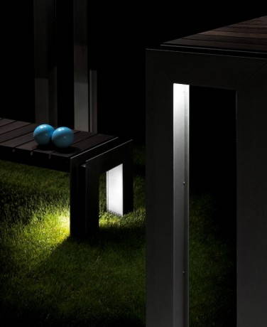 Disegnata da Enzo Berti, la collezione di lampade da esterno Bridge si caratterizza per il contrasto tra la durezza del materiale e la leggerezza della luce che ne pennella la superficie.