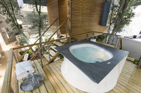 Original Wellness Treehouse si compone di tre moduli (un’area “wellness”, un’area lounge/massaggi, una terrazza relax) per un totale di 35 mq, posizionati a diverse altezze in un’infinità di combinazioni possibili e racchiudono all’interno, tutta la sapienza e l’innovazione di City™Spa e Sasha MI di Jacuzzi®, prodotti che garantiscono le migliori performance di una spa professionale in uno spazio contenuto. Davvero interessante anche il fatto che questa innovativa SPA sospesa è concepita secondo le più aggiornate tecniche della bioedilizia. Tutti i materiali utilizzati sono di origine naturale e sono completamente riciclabili: abete e larice provenienti da foreste certificate PEFC costituiscono la struttura e il suo rivestimento; l’isolamento è realizzato in sughero e lana di pecora certificata LEED, mentre i rivestimenti di copertura sono in alluminio. Concepita soprattutto per il mercato del contract, per quegli hotel che vogliono offrire un’esperienza unica ai propri clienti pur con spazi interni limitato o soggetti a vincoli, questa Spa nella natura viene proposta “modelli concettuali”, tutti accomunati dalle stesse caratteristiche di modularità, efficienza ed eco compatibilità.: Sea/Beach Resort, per le location al mare. Country/Mountain Resort, per chi ha una zona verde magari affacciata su un panorama da togliere il fiato, e infine l’Urban Resort, per hotel urbani, da posizionare su tetti o terrazze. www.jacuzzi.eu www.sullalbero.it