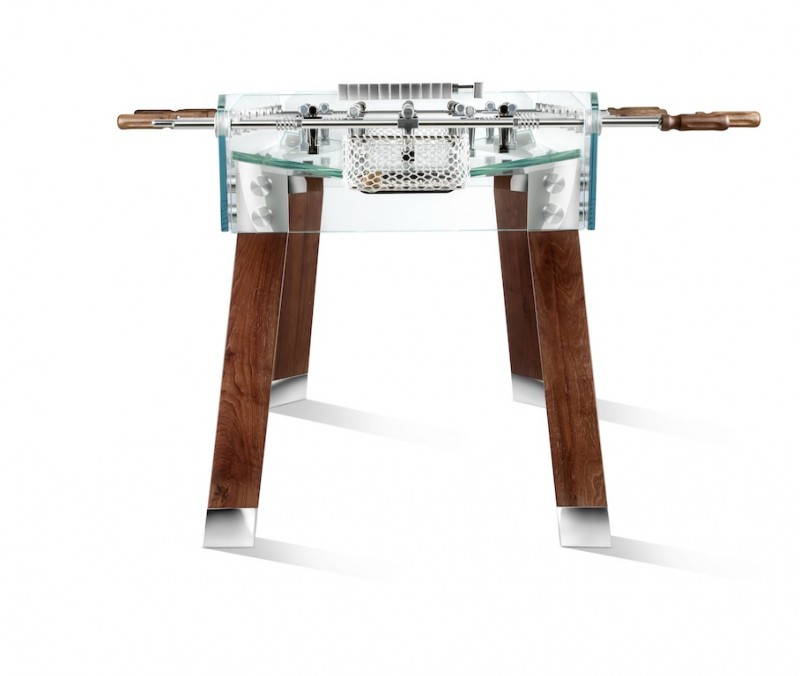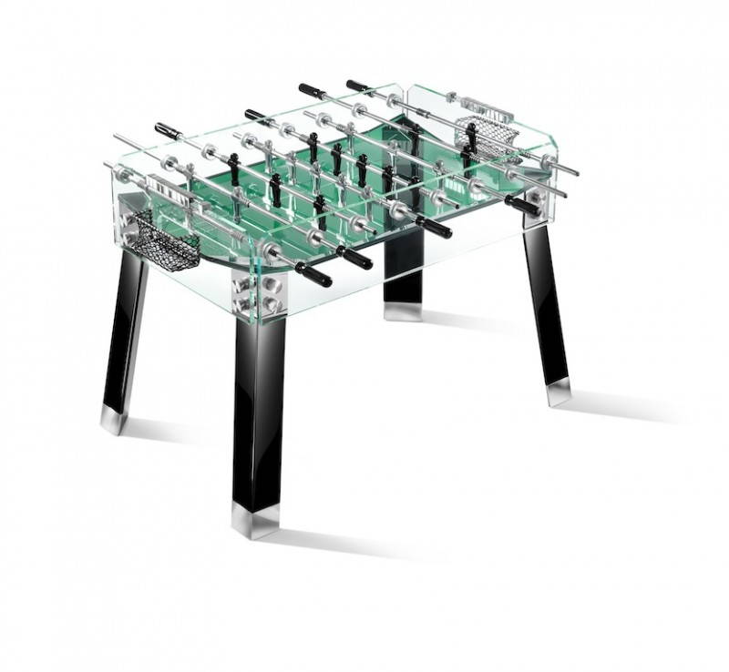 Però, quando Kristall Teckell è stato presentato al pubblico, ha catturato lo sguardo di centinaia di curiosi. Effettivamente è quasi impossibile non notarlo: linee raffinate e pulite, gambe e manopole nere, bianche o noce, e piano di gioco trasparente o verde. Un oggetto che rappresenta una piccola o grande parte della memoria collettiva, perché anche i più schizzinosi avranno giocato almeno una volta a biliardino con gli amici, ma anche una vera e propria chicca destinata a chi può permettersi di cedere ad una così preziosa e sofisticata “tentazione”.
