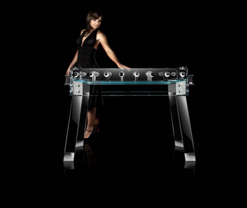 Si tratta di uno dei modelli della collezione Teckell, che offre una serie di calciobalilla preziosissimi, tra dettagli in oro, forme barocche e finiture in legno pregiato. Insomma, niente a che vedere con i biliardini dei bar e degli stabilimenti balneari.