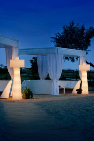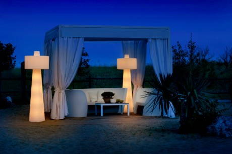 Up è una lampada da terra di grandi dimensioni, disegnata da Mario Mazzer per Lucente e realizzata in polietilene tramite la tecnologia dello stampaggio rotazionale. Up è disponibile nella versione “nuda” per esterni e arricchita di romantici “abitini in lana tricot” per gli interni.
