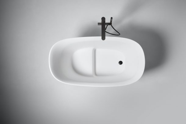 La sua linea è organica e minimale, fluida ed elegante, bella e curata in ogni dettaglio. A partire dal fondo ergonomico a due altezze diverse, che invita a rilassarsi in una posizione comoda e naturale, fino al gradino esterno in legno, che facilita l’accesso all’interno della vasca.