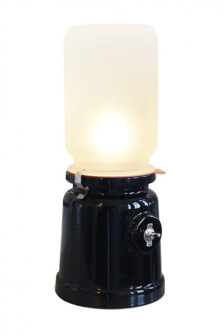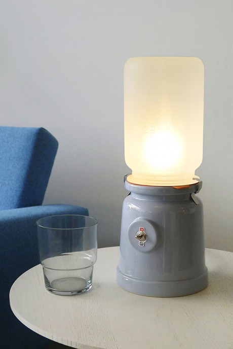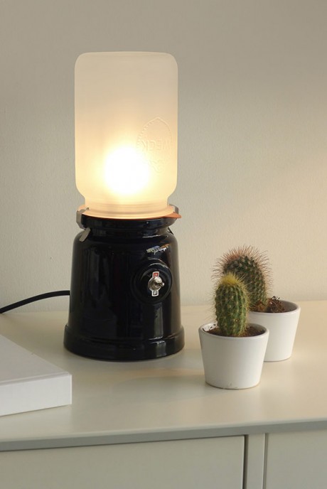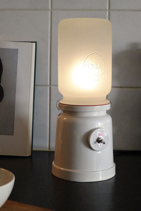 Nascono da un’idea dei designer olandesi Kranen/Gille i quali, avendo trovato una gran quantità di vecchi vasi Weck, una storica azienda specializzata in contenitori di vetro, hanno pensato di utilizzarli per un loro nuovo progetto. Hanno così aggiunto una base in ceramica (bianca, blu o nera), hanno sabbiato i vasi che sono diventati dei paralumi e ne è nata Meck, una collezione di lampade da tavolo.