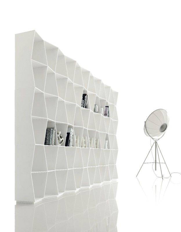Innovativa sia nelle forme, sia nel materiale con cui è costruita, la libreria Wawy disegnata da Marco Bavuso per Alivar è destinata a modificare il concetto di libreria modulare.