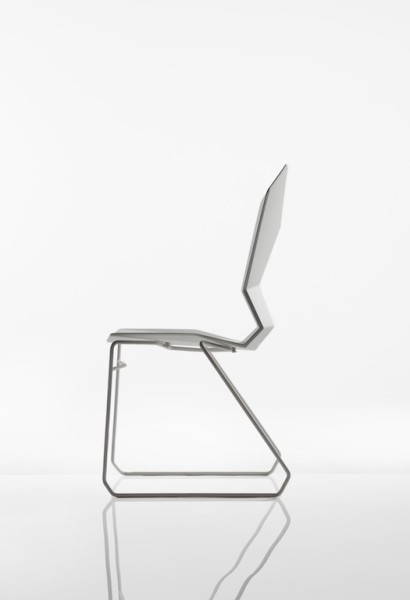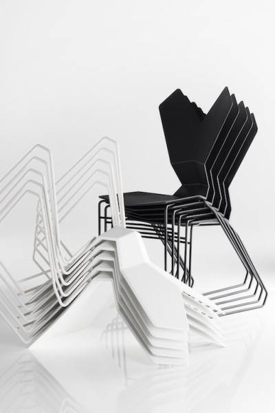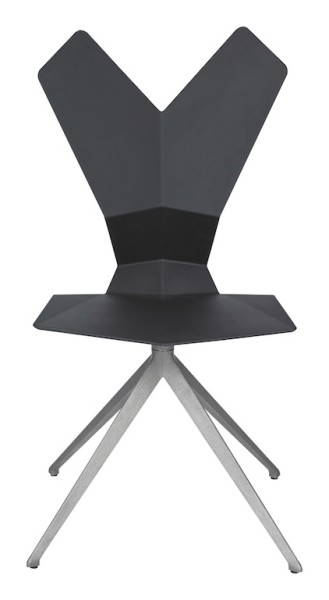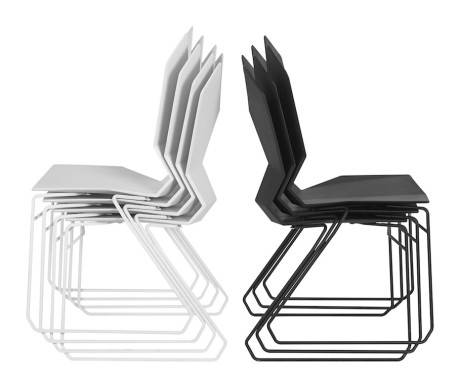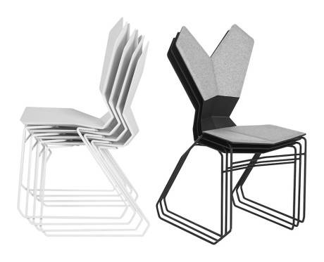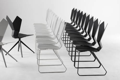 Dopo due anni di sviluppo, ingegnerizzazione e ricerca della forma più adatta, è nata questo questo prodotto: una sedia dalle linee grafiche che creano una silhouette facilmente riconoscibile, la cui scocca è realizzata con uno stampo a iniezione in vetroresina, un materiale altamente resistente agli urti.